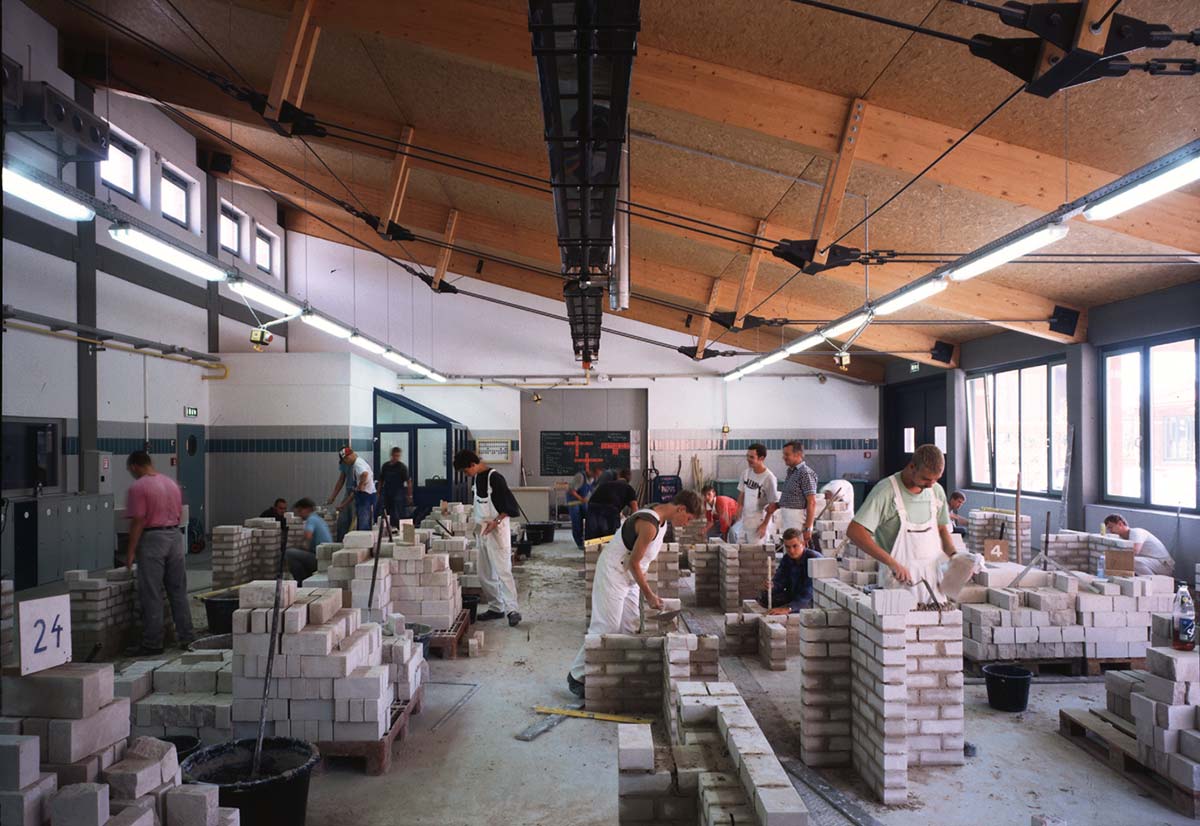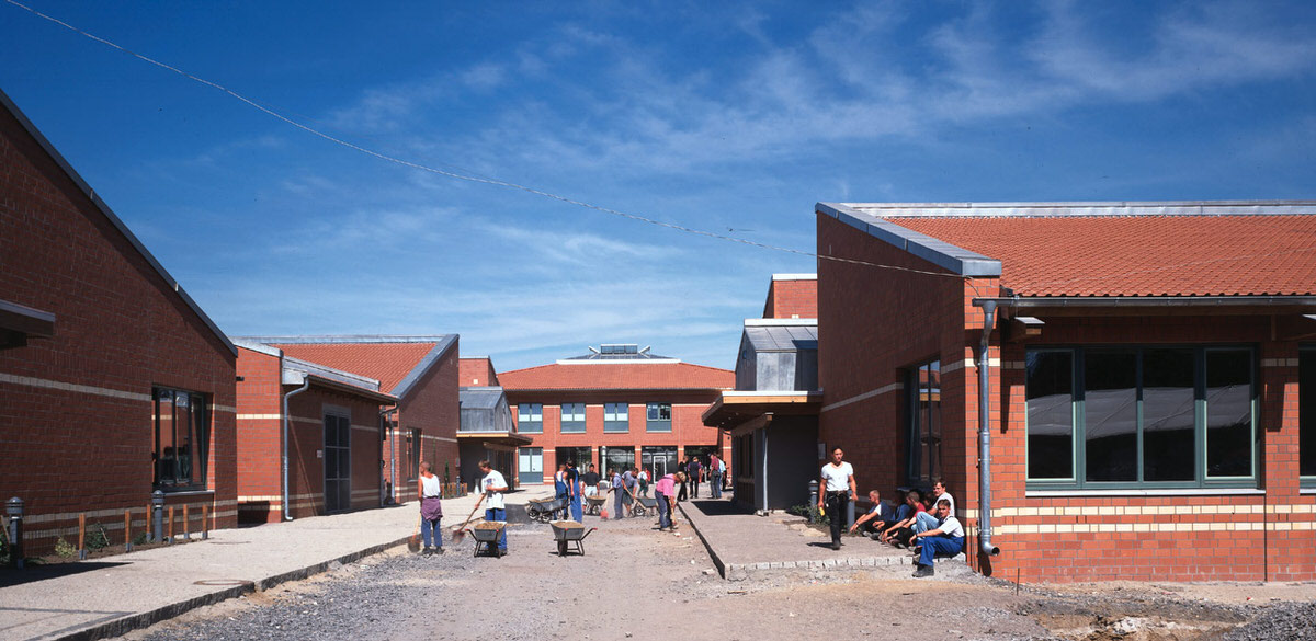 Neubau von 16 Werkhallen, Verwaltung, Mensa und Unterrichtsräumen |