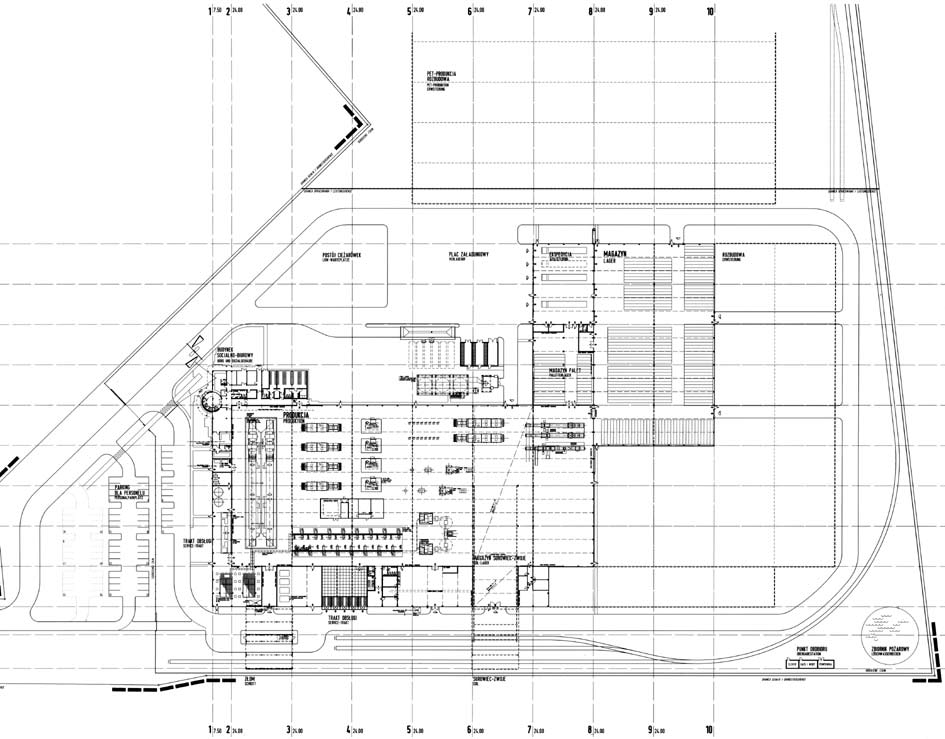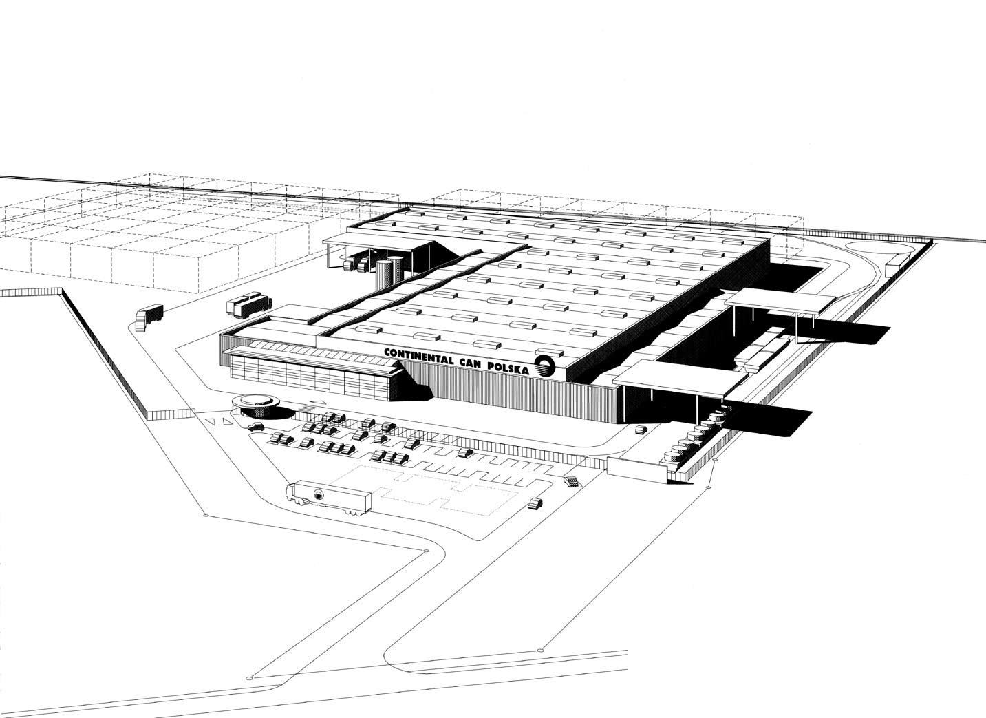 Neubau eines Getränkedosenwerkes. Lineare Erweiterbarkeit der Produktionslinien und Lagerkapazitäten, Gleisanschlussmöglichkeit, mögliche Anbindung an weitere Produktionsstätte für Kunststoff-Getränkeflaschen (PET). |