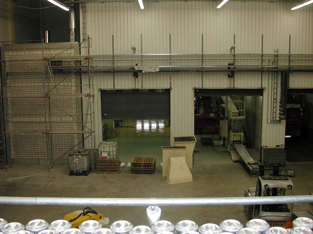 Die Erweiterungen optimieren den Betriebsablauf: Paletten- und Pappenlager grenzen an die Verpackung, das Dosenlager wird doppelt so groß. Zusätzliche Verladestationen dienen diese Bereiche an. Die Forderung des Bauherrn, die neu entstandene Fläche möglicherweise extern vermieten zu können, war für uns Planer eine Herausforderung für Logistik und speziell Brandschutz.