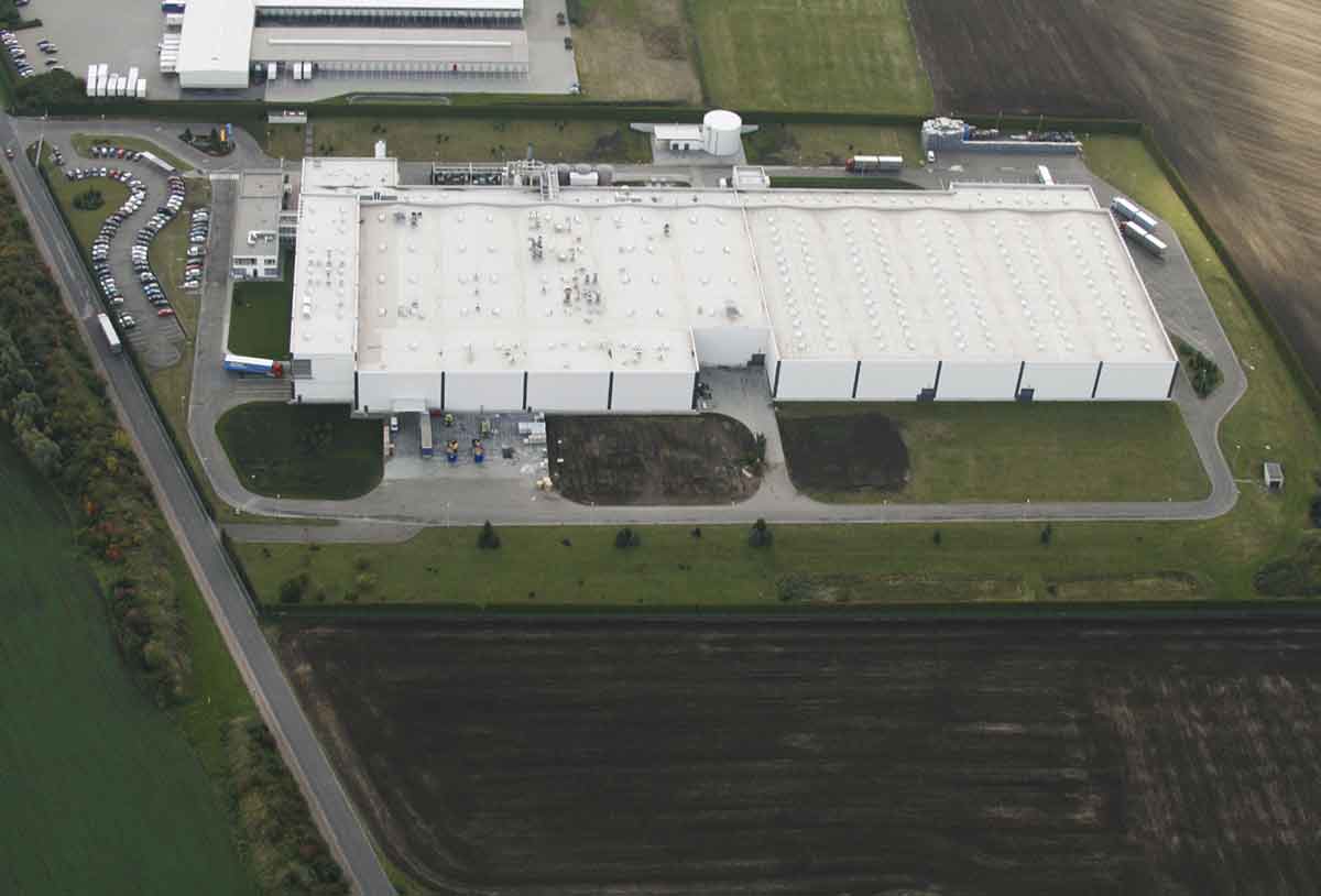Nach dem Einigungsvertrag mit der ehemaligen DDR planten wir (damals noch für Continental Can Europa) den Neubau einer kompakten, 4-teiligen Anlage: Coil-Lager und Washerbühne, Halle für 3 Produktionslinien, Servicebereich, Lager für den Versand mit Spezial-Andocksystem für C-C-Fahrzeuge. Die Industriehalle ist eine reine Stahlkonstruktion mit Stahlblech-Sandwich-Fassade und Industrieleichtdach. Die Bereiche sind durch Komplextrennwände gegen Brandüberschlag geschützt. Das Gewerbegebiet in Hermsdorf bei Magdeburg hatte eine Gestaltungssatzung mit hohen Qualitätsansprüchen an Industriebauten. 2006, nach dem Brand in Hassloch, wurde parallel zum dortigen Wiederaufbau beschlossen, Hermsdorf mit einer dritten Produktionslinie aufzustocken, das gesamte Werk zu sprinklern und das Obergeschoss des Bürogebäudes als Kantine auszubauen.