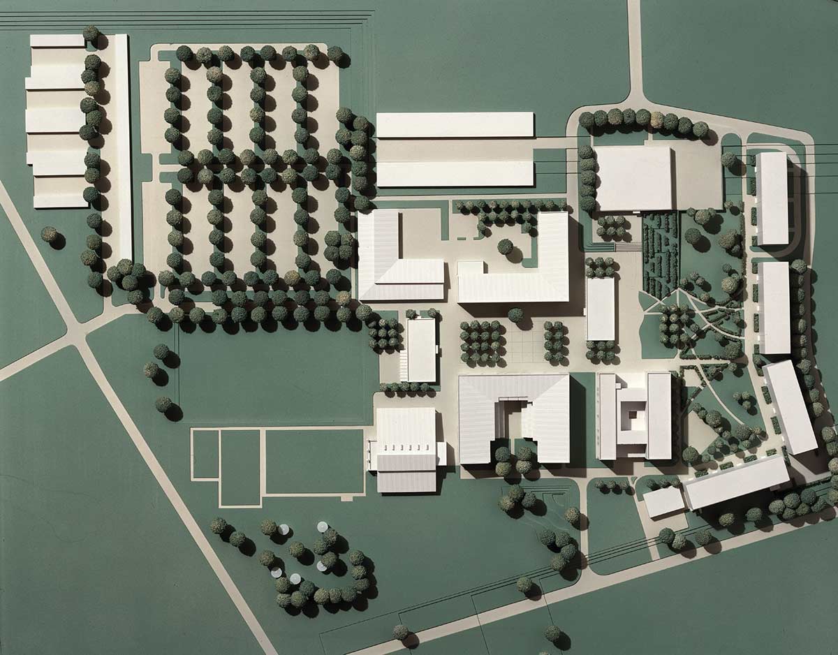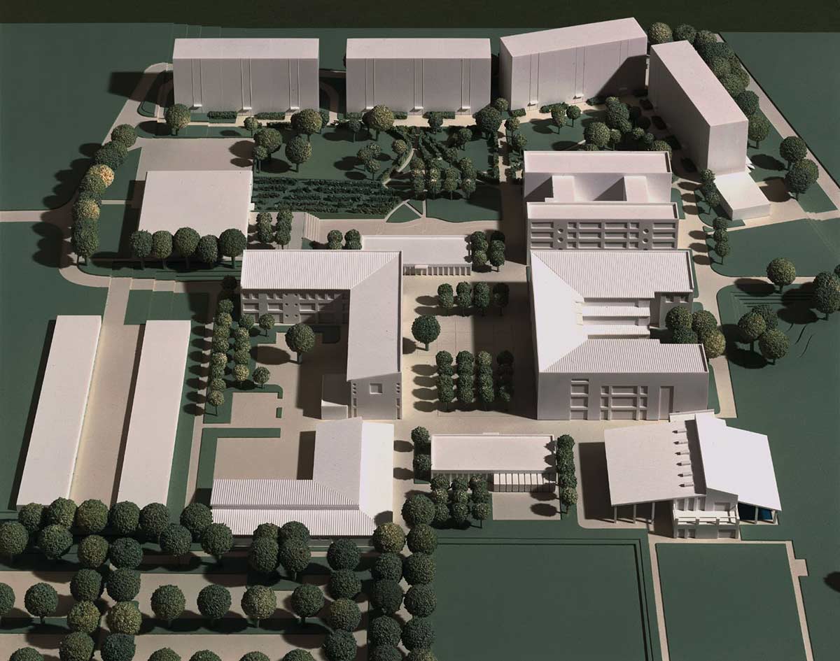 Herstellen einer "Stadt" in der Stadt, in der sich die Rehabilitanden leicht orientieren können und sich wohl fühlen. Teilen des Raumprogramms in vier Neubauten. Einfügen der Neubauten in den Bestand, so dass sich definierte, baulich gefasste Freiräume ergeben und die Gesamtanlage logisch zoniert ist als Abfolge von: Parken, Pförtnerei /Empfang (Anlieferung), Erstaufnahme, "Forum" mit Verwaltung und Ausbildung, Wohnhöfen, Wohnheimen